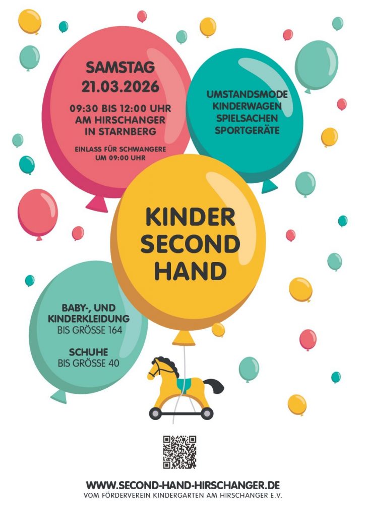 Am Samstag, den 21.03.2026 findet von 09:30 – 12:00 Uhr der nächste Kinder Second Hand Basar in der Turnhalle am Hirschanger in Starnberg statt.